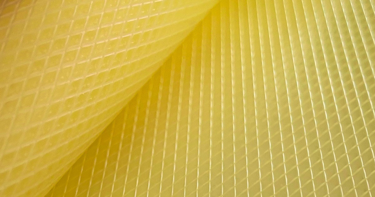 Film termoadesivo termoplastico a base poliuretanica supportato da carrier PE giallo goffrato